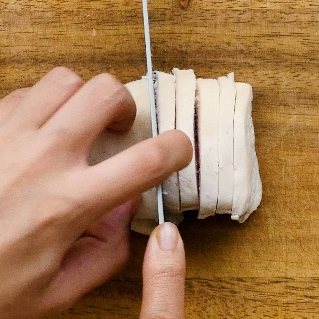 鶏肉を1cm幅に薄切りにします。