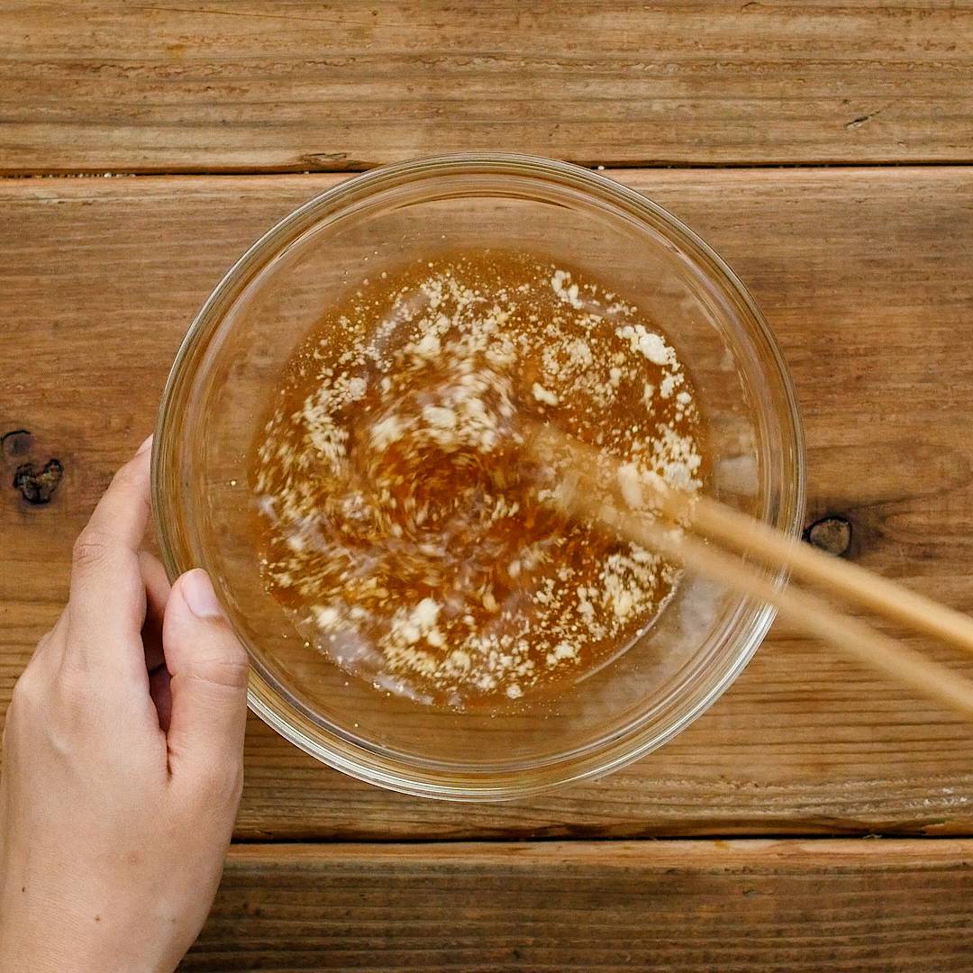 ボウルにスープの材料を入れて混ぜ合わせます。