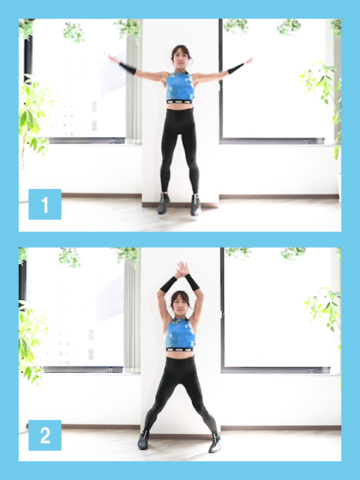やり方 立ち姿勢になり、軽くジャンプする 足を開いた時に、頭の上で手を叩く 足を閉じた時には、腕は下ろす