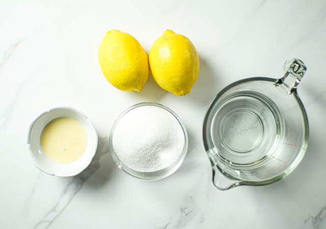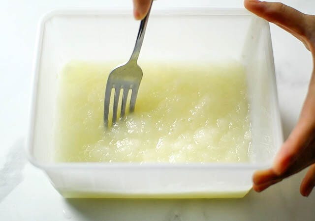 このレシピではレモンと砂糖に少量のコンデンスミルクを入れることで酸味がマイルドになり、尖った酸味がなくなってとても食べやすくなります。しかもコンデンスミルクは凍らせてもシャーベットを柔らかく保つ働きがあるので、作った次の日に固くなりすぎてしまうことを防げます。