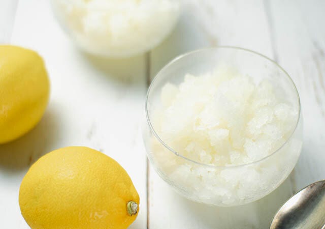 イタリアでは暑くなってくるとバールの外にレモンのグラニータのマシーンが置かれます。これはフラペチーノのような半分凍ったドリンクのような感じで、ストローで氷をすくいながら食べます。レモンシャーベットを完全に凍らせずに冷凍庫に入れてかき混ぜながら途中で取り出すと同じような食感になり、こちらも暑い日に食べやすいデザートになります。お好みの固さでお召し上がりください!