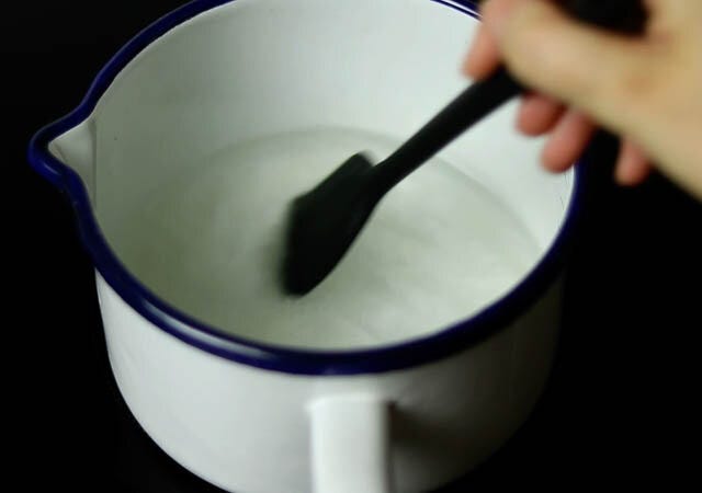 ② 小鍋に水と砂糖を入れ、火にかけて砂糖を溶かします。