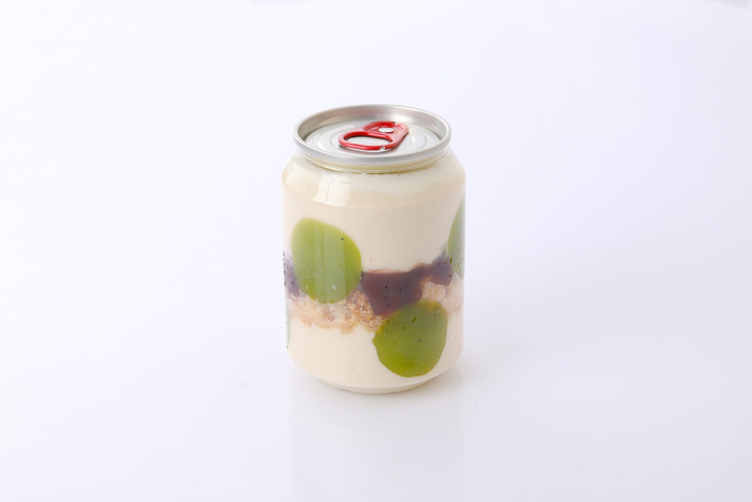 「洛缶CAKE(フロマージュ)」918円/マスカルポーネにカスタードクリームと黒糖を合わせたクリームチーズ、アクセントに粒あん、クランブル、抹茶の求肥を添えています。