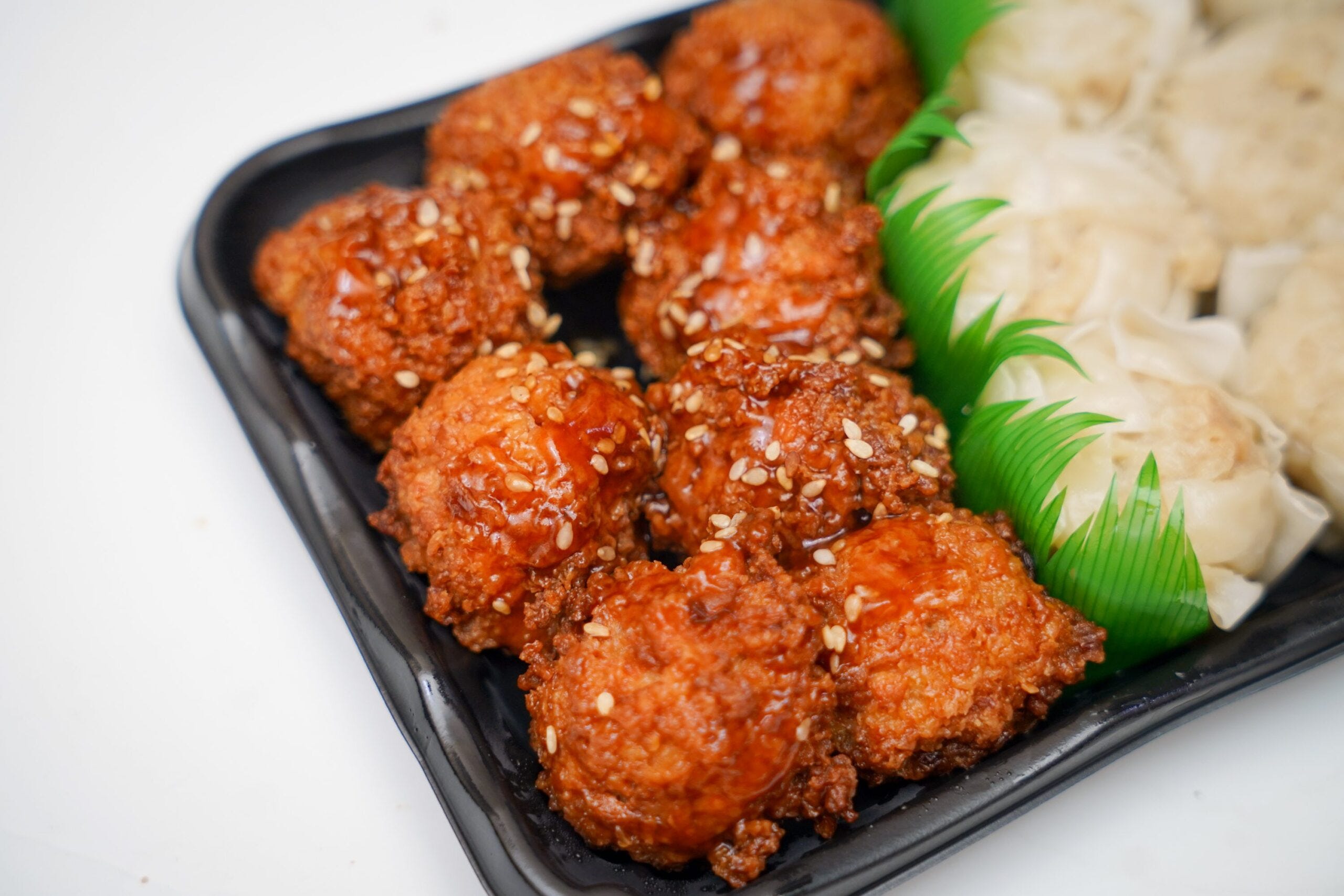 まずシュウマイを食べたところ、シンプルな味わいでいい感じ。今回は自宅で食べているため、からしをつけたところさらにイケる。一方で、肉団子は酸味の効いた甘酢の味わいが絶妙で1つまた1つ...と箸が進んでしまう。どちらも安定の美味しさだがやはり量が多く、正直後半は気合で食べている状態になっていた。
