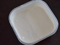 ボウルに生クリームを入れ、7分立てほどにしたら、冷ました[2]のいちごを加えてなめらかな口あたりになる程度に混ぜ、冷凍できるタッパーなどに入れて、冷やし固めます。