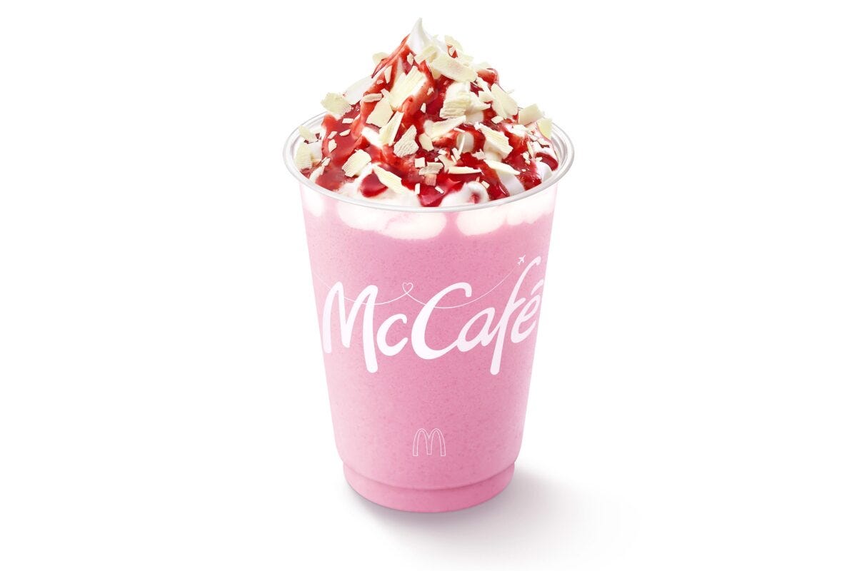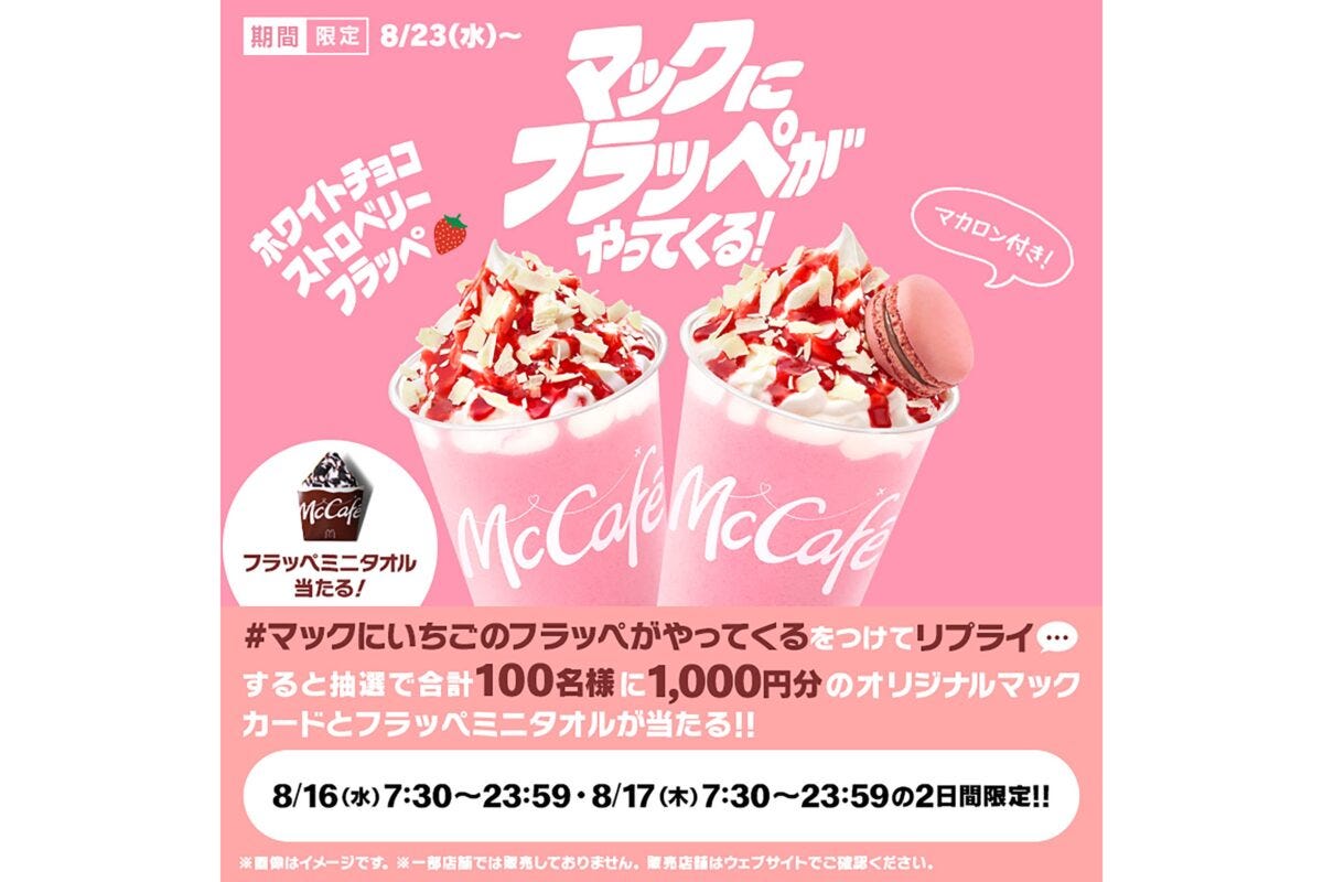 マクドナルドが、23日から期間限定フラッペとして『ホワイトチョコストロベリーフラッペ』( 490円)を全国の日本マクドナルド店舗で発売する。
