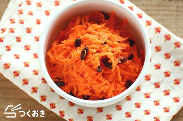 材料のにんじんは塩もみしてしっかり水気をふきとり、調味料でサッと和えるだけで簡単に調理できるサラダです。