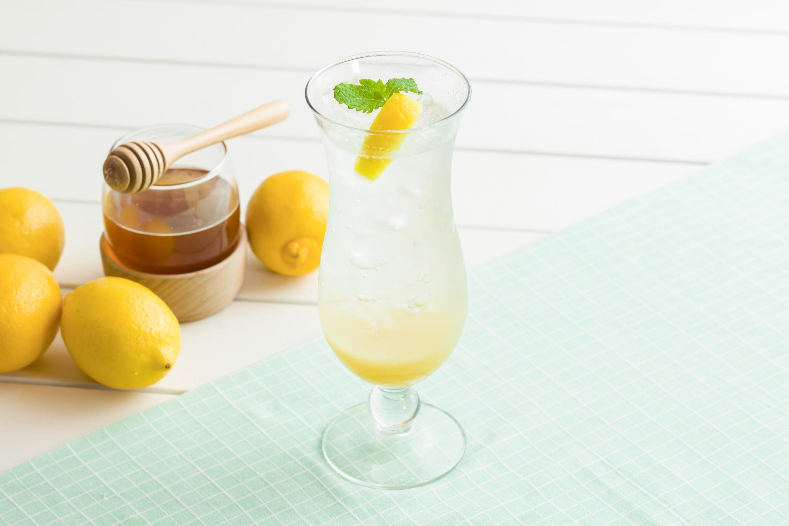 「ハニーレモンスカッシュ」テイクアウト702円、イートイン715円 パンケーキやバーガーにぜひ合わせてほしいドリンク2種も、季節限定で登場。「ハニーレモンスカッシュ」は、瀬戸内レモンソースにはちみつを加えた、さっぱりとしたスカッシュです。