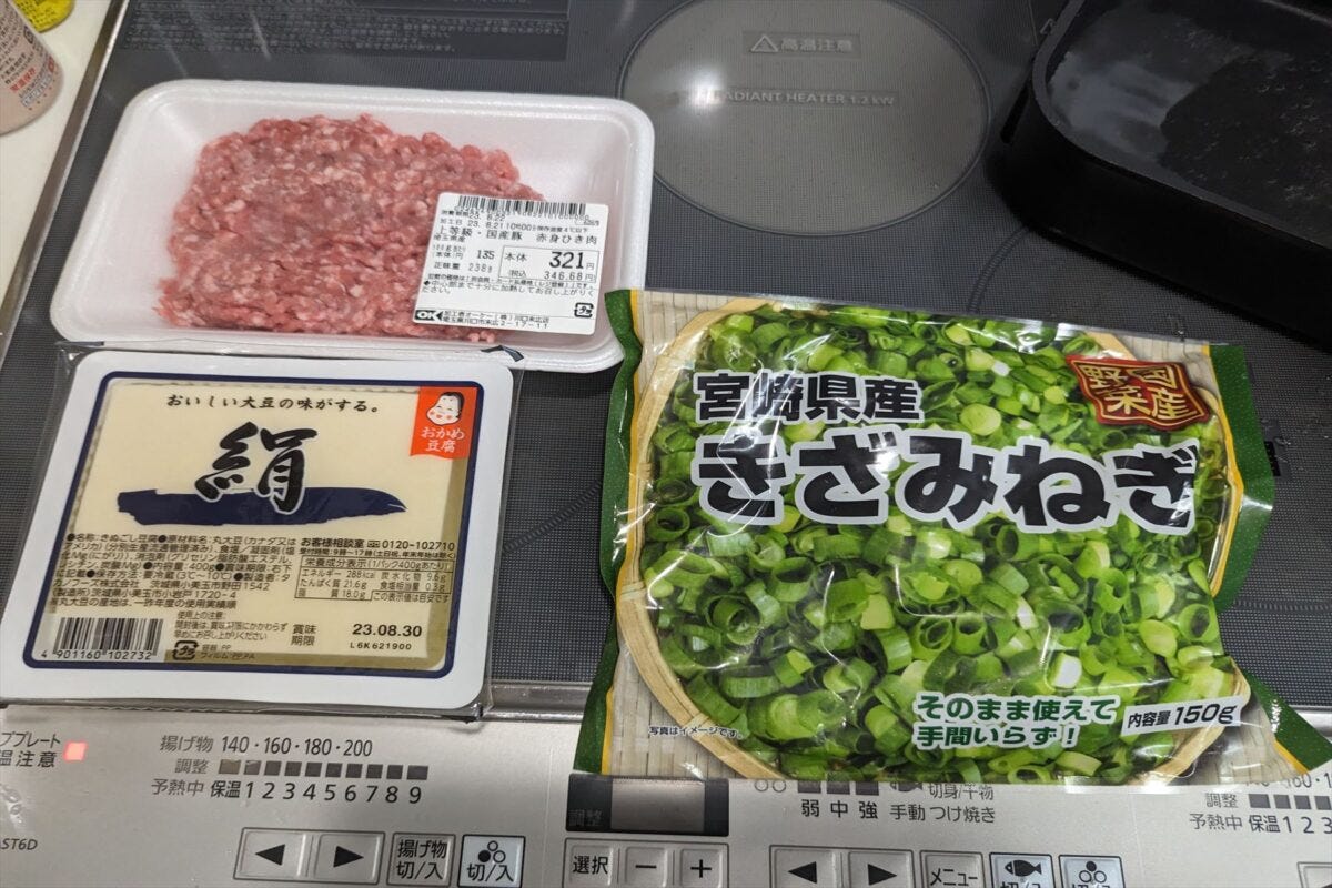 しかし、作り方はいつもの「Cook Do®」と同じく超簡単。基本的には豚ひき肉と豆腐があればOKで、お好みでねぎを用意すれば問題ない。