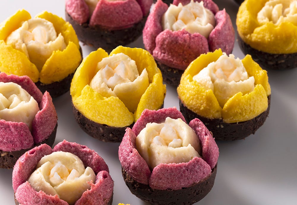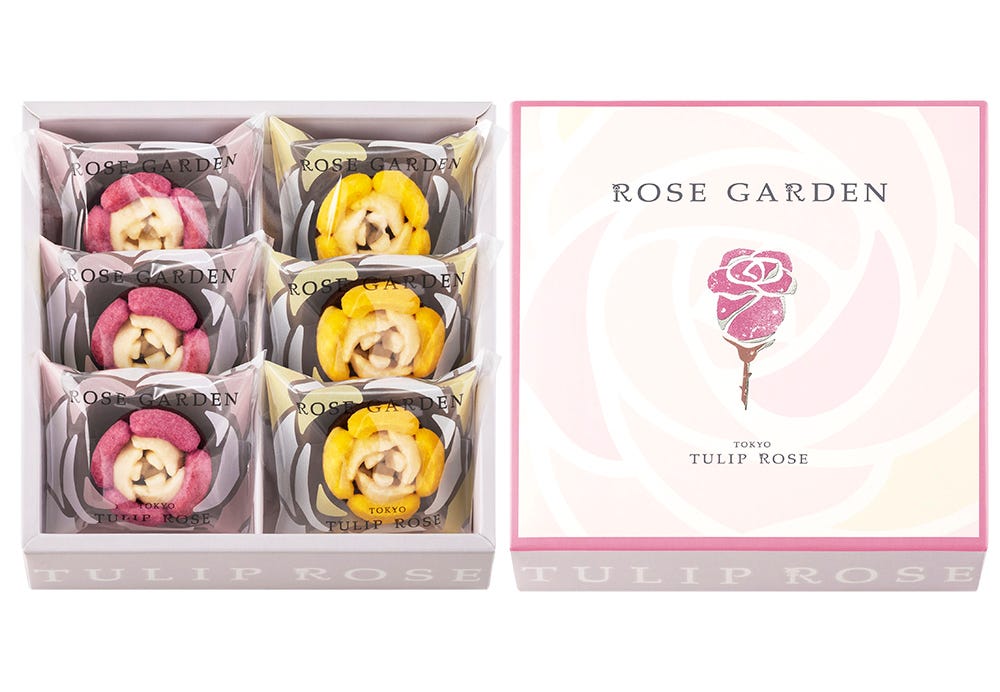 食べるのはもったいないかわいさですが、周りのラングドシャがサクサクで、中央のクリームがフワフワの「チューリップローズ」はおいしさも格別です。通年フレーバーには「ベリー」「パッションマンゴー」「キャラメルナッツ」があるので、各種購入して“カラフルな花畑“を楽しむのもよさそう!