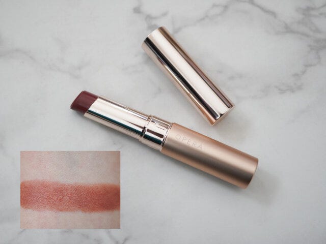 オペラ「シアーマットリップスティック」04 ブラウン(税込1,980円)は、ピンクニュアンスのやわらかいブラウン。シックな女性らしさを帯びたカラーです。マットでも透け感のある発色なので、軽やかな印象に。