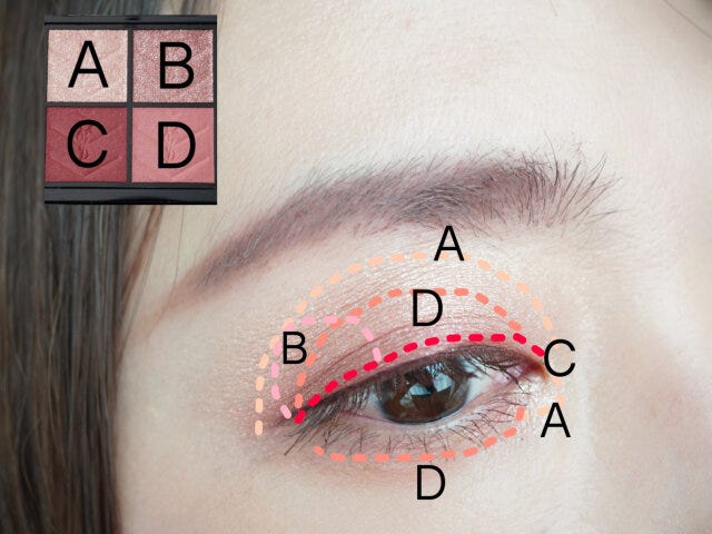筆者は今回、赤みを強く出す塗り方でメイクをしてみました。塗り方は下記のとおりです。