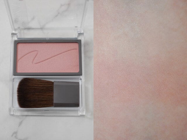 使用したのは、セザンヌ「チークブラッシュ」01 フォギーローズ(税込550円)。プチプラと思えないしっとりとした上質なパウダーチークで、にじみ出るような血色感を簡単に演出できます。