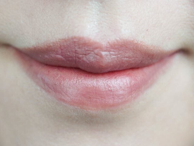 2023年の秋メイクでは、高機能なマットリップが続々と登場している点も見逃せません。目元にグリッターをたっぷり使っているので、口元はマットなブラウンで落ち着きを持たせましょう。アイメイクにリンクさせて、ピンク系のブラウンを選んでみました。