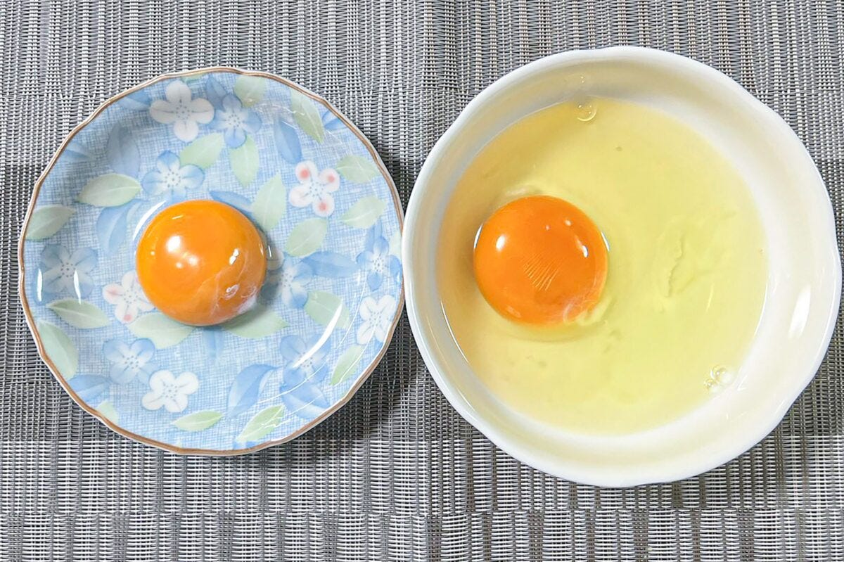 次に生卵を黄身1つと卵1つ+余った白身に分け、