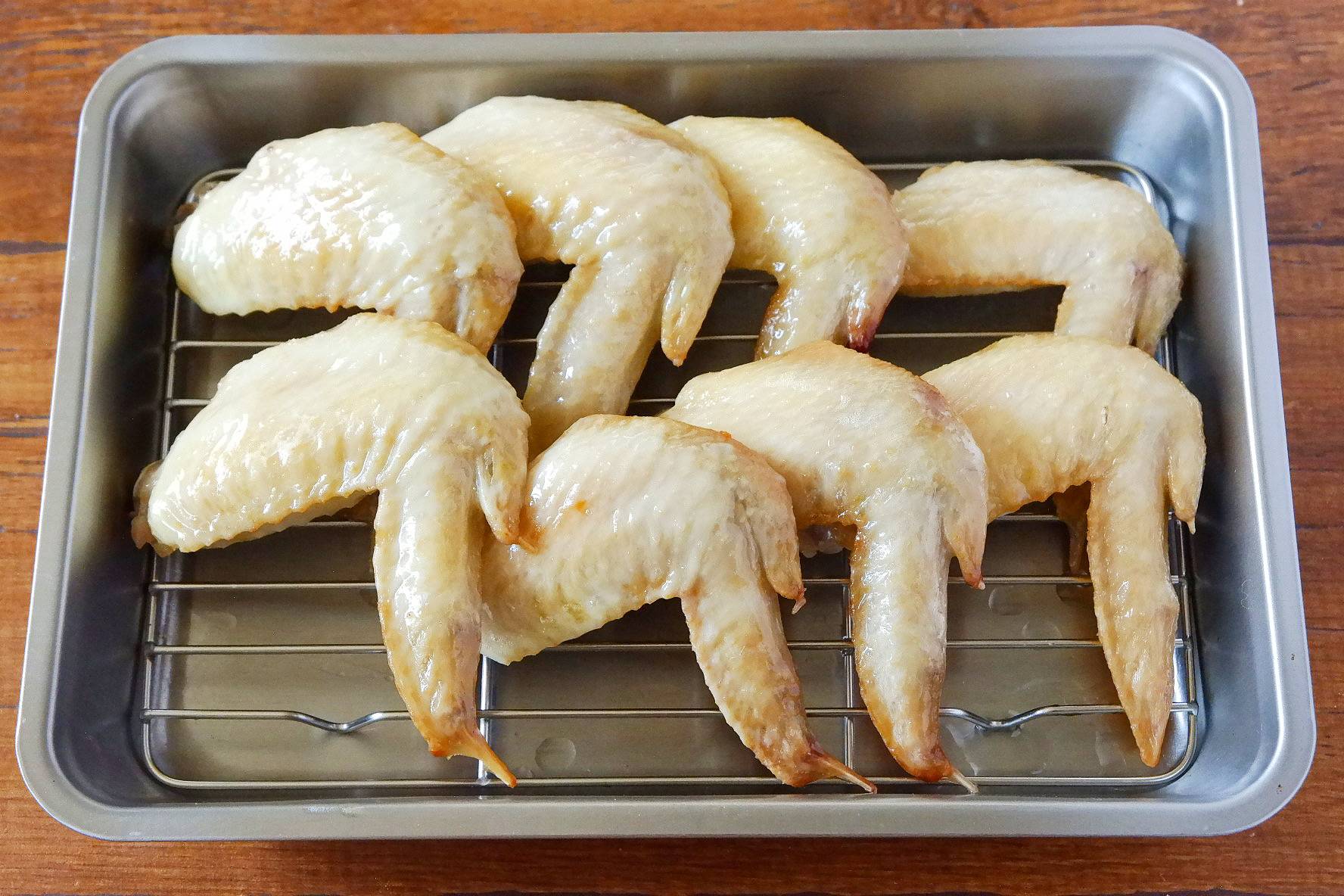 鶏手羽先に塩をまんべんなくまぶします。そのまま10分ほど置きます。