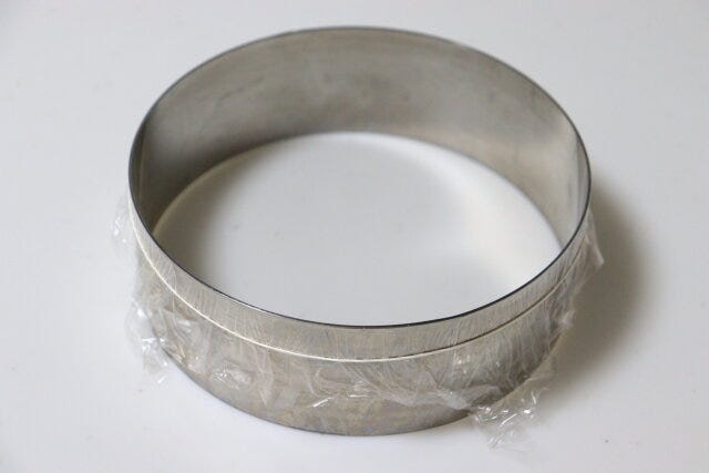 今回はセルクルを使って作りますが、底取れの丸型を使用しても構いません。
