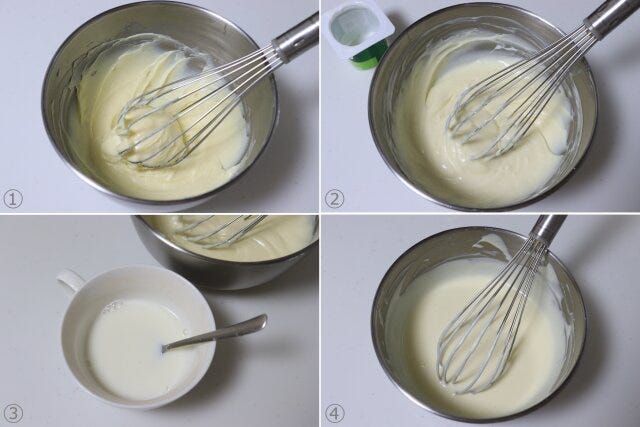 ② ヨーグルトを加えて混ぜる。