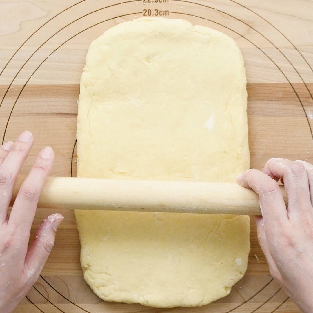 14×20cm、厚さ2cmにのばしてセルクルで抜きます。