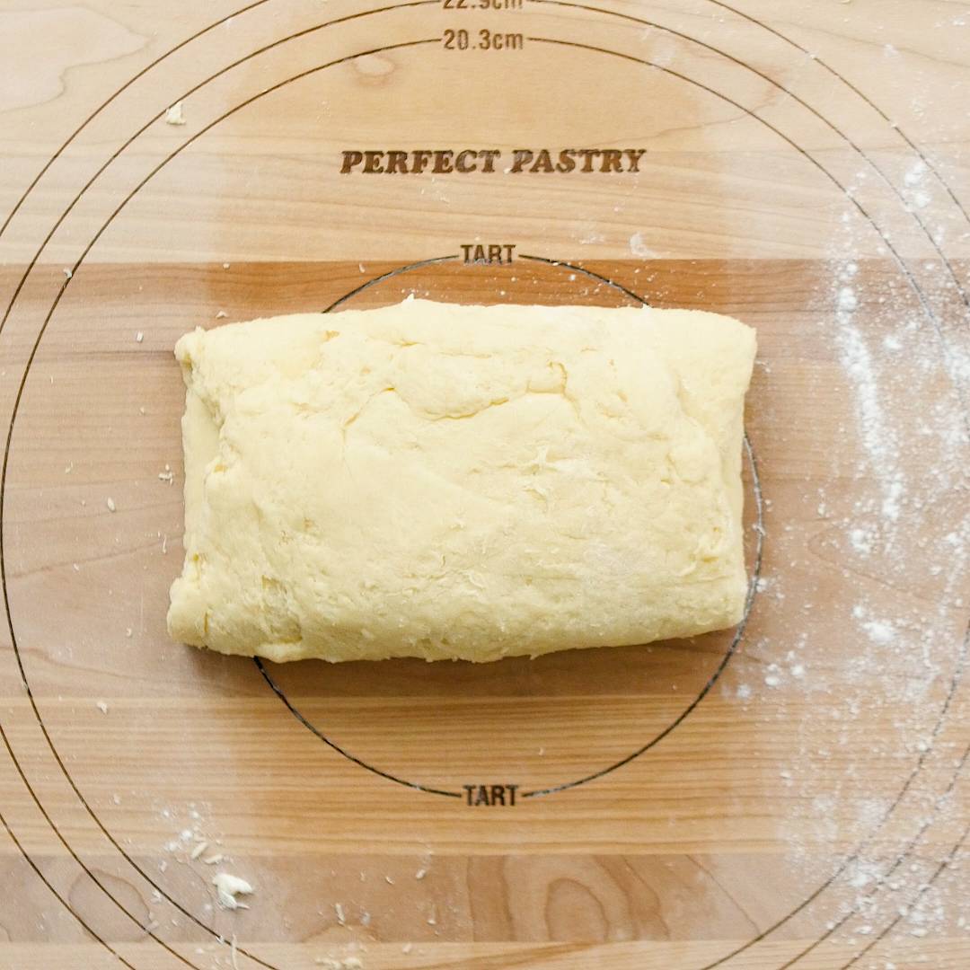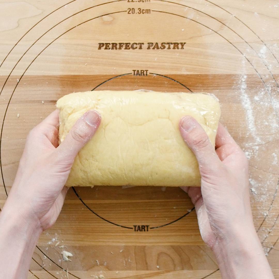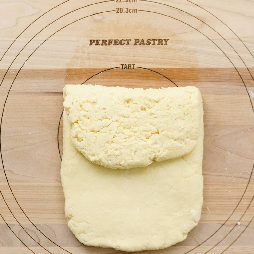 4回折り込んだらピッタリラップを巻いて冷蔵庫で1時間休ませます。