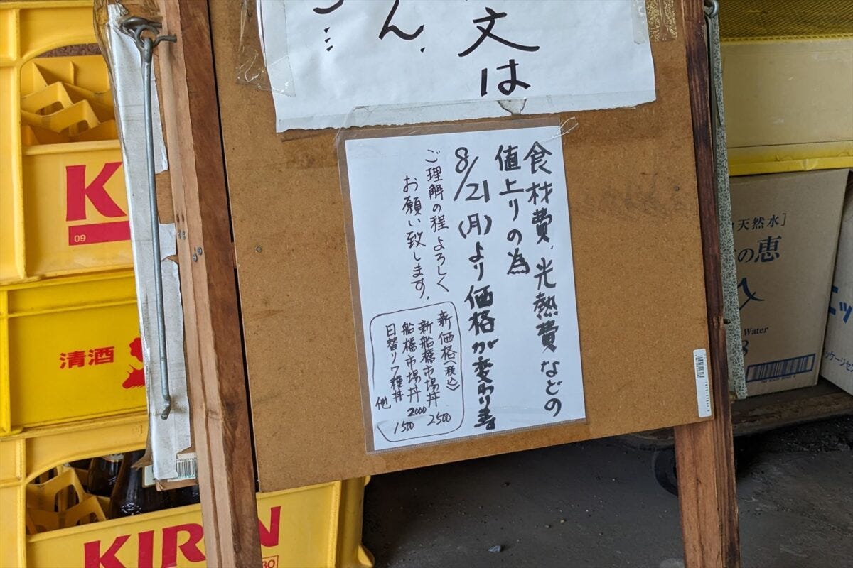 さまざまな具材がのった新船橋市場丼と船橋市場丼は8月21日から値上げされているのだが、それでも店内は満席でかなりの賑わいを見せていた。