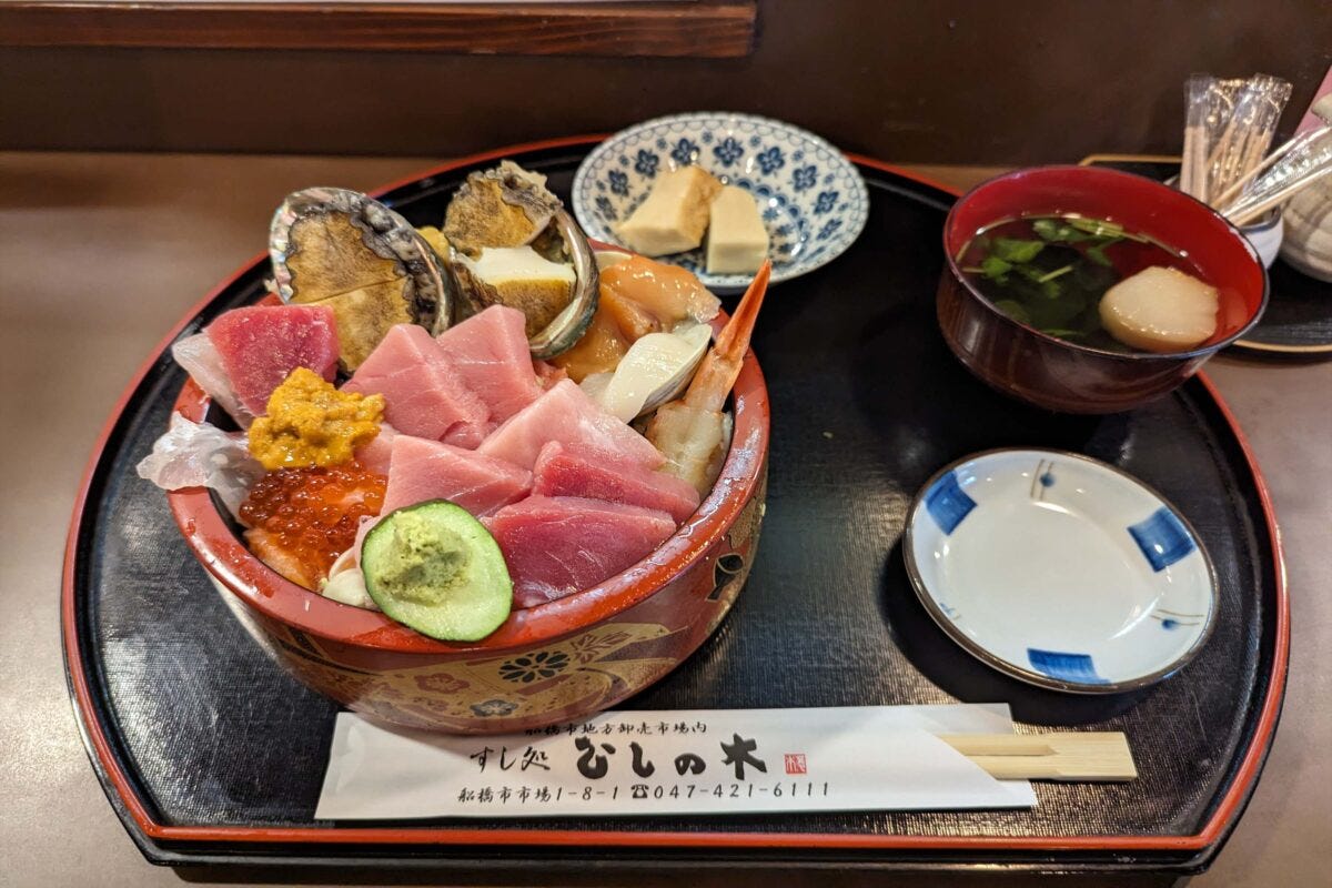 コストパフォーマンスが高い市場メシの中でも、トップクラスに味が良くリーズナブルな寿司店をあげるとしたら、船橋市場の「ひしの木」である。