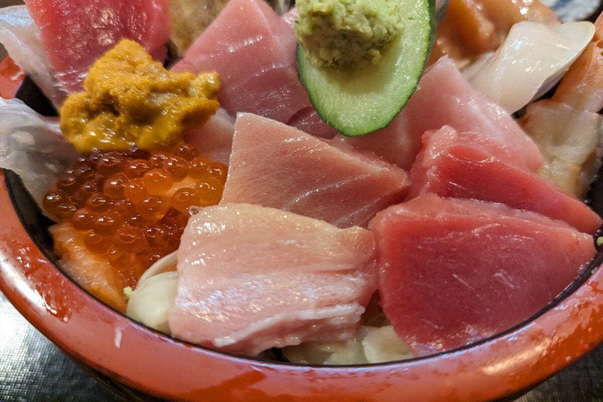 まぐろも市場ならではの高品質なものが使われているため、赤身は旨味が強く、とろは脂ののりがバツグンで最高だ。