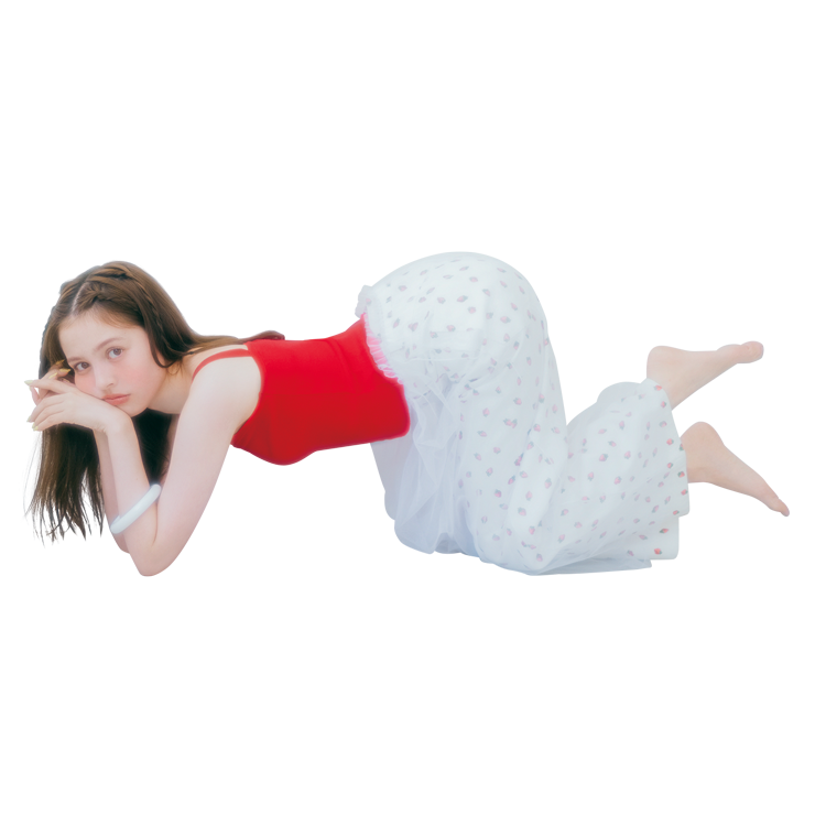 キャミソール 4,950円/COCO DEAL(ココ ディール) イチゴ柄デニムパンツ 15,600円/POPPY(POPPY 原宿) チュールスカート 2,199円/WEGO バングル 9,720円/アビステ