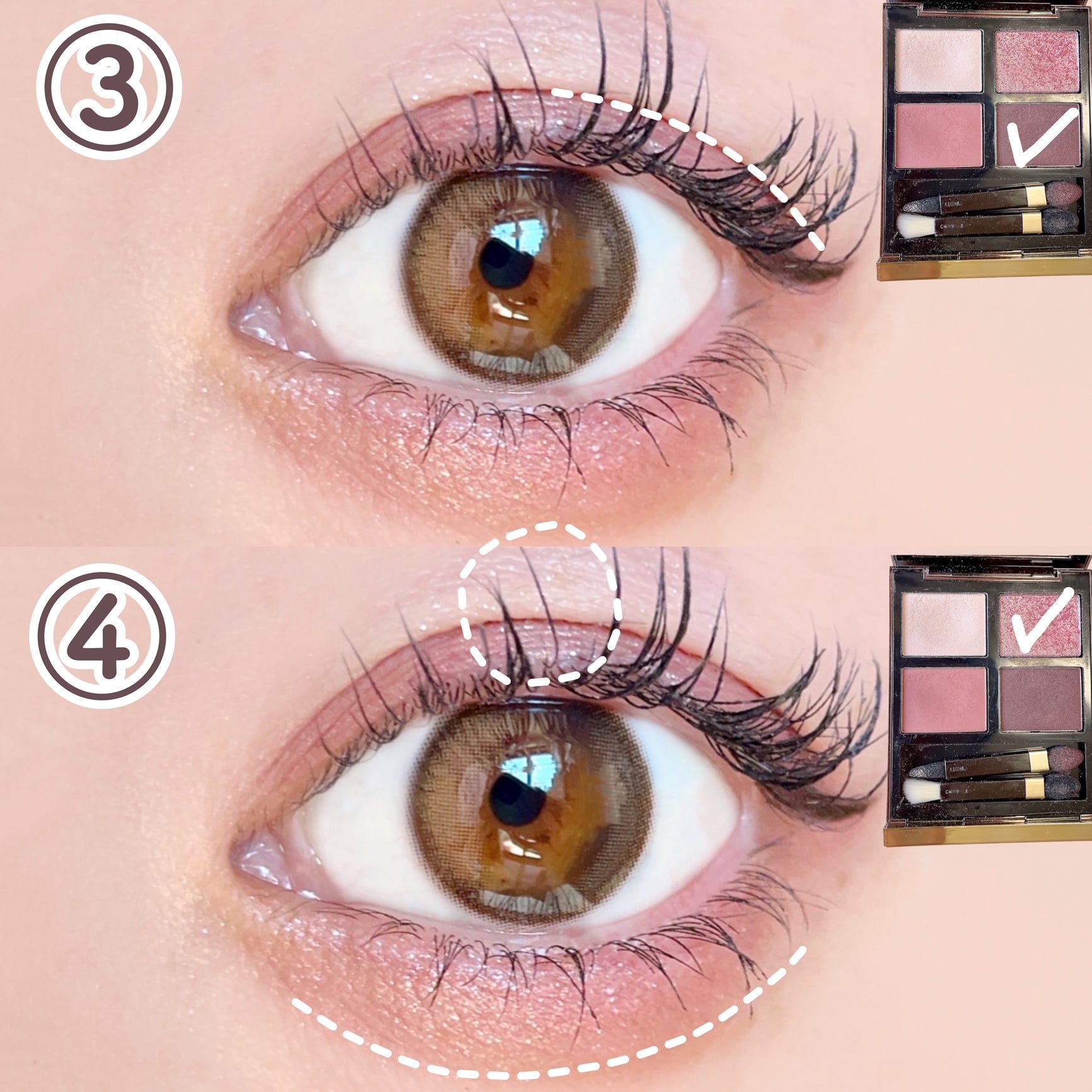 ③ 右下のカラーを目尻に塗ります。