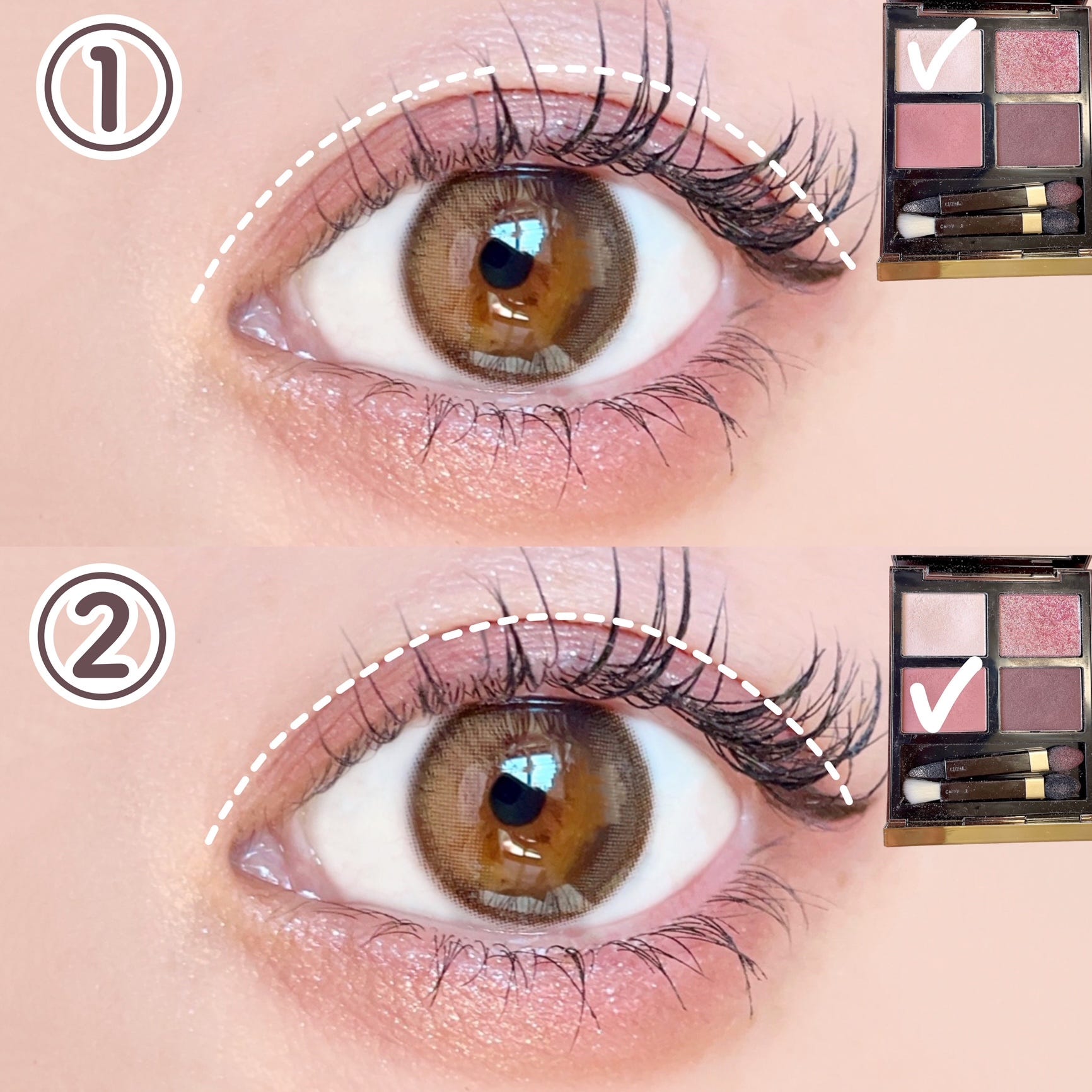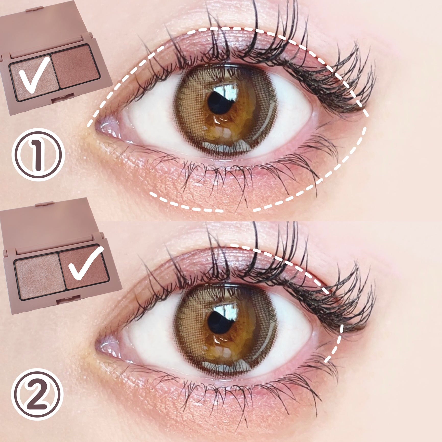 2色の質感の異なるアイシャドウパレット。重ねて塗るだけで綺麗なグラデーションがつくれます!