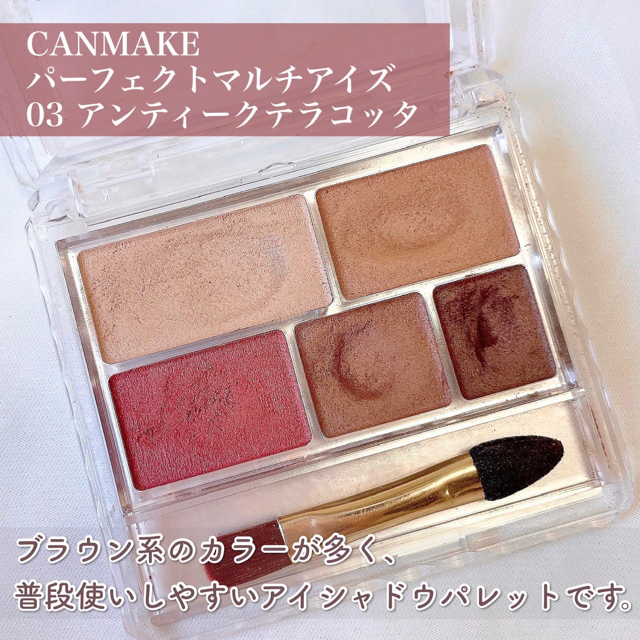 最初に紹介するのはCANMAKE パーフェクトマルチアイズ 03 アンティークテラコッタ(税込858円)