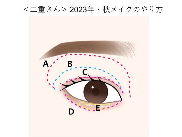③ 二重幅の内側(C)に明るめのブラウンを塗る。