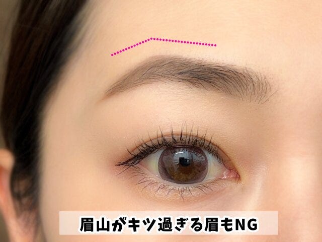 下がり眉がNGとはいえ、眉山がカクカクとした上がりすぎた眉も老け見えしてしまうので注意しましょう。