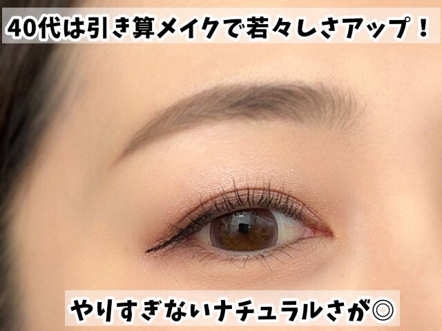 年齢を重ねたら逆に目元はナチュラルにしていきましょう!マスカラはブラックよりブラウン・アイライナーも目尻だけ、と引き算メイクをしていくと若々しさが劇的にアップします。