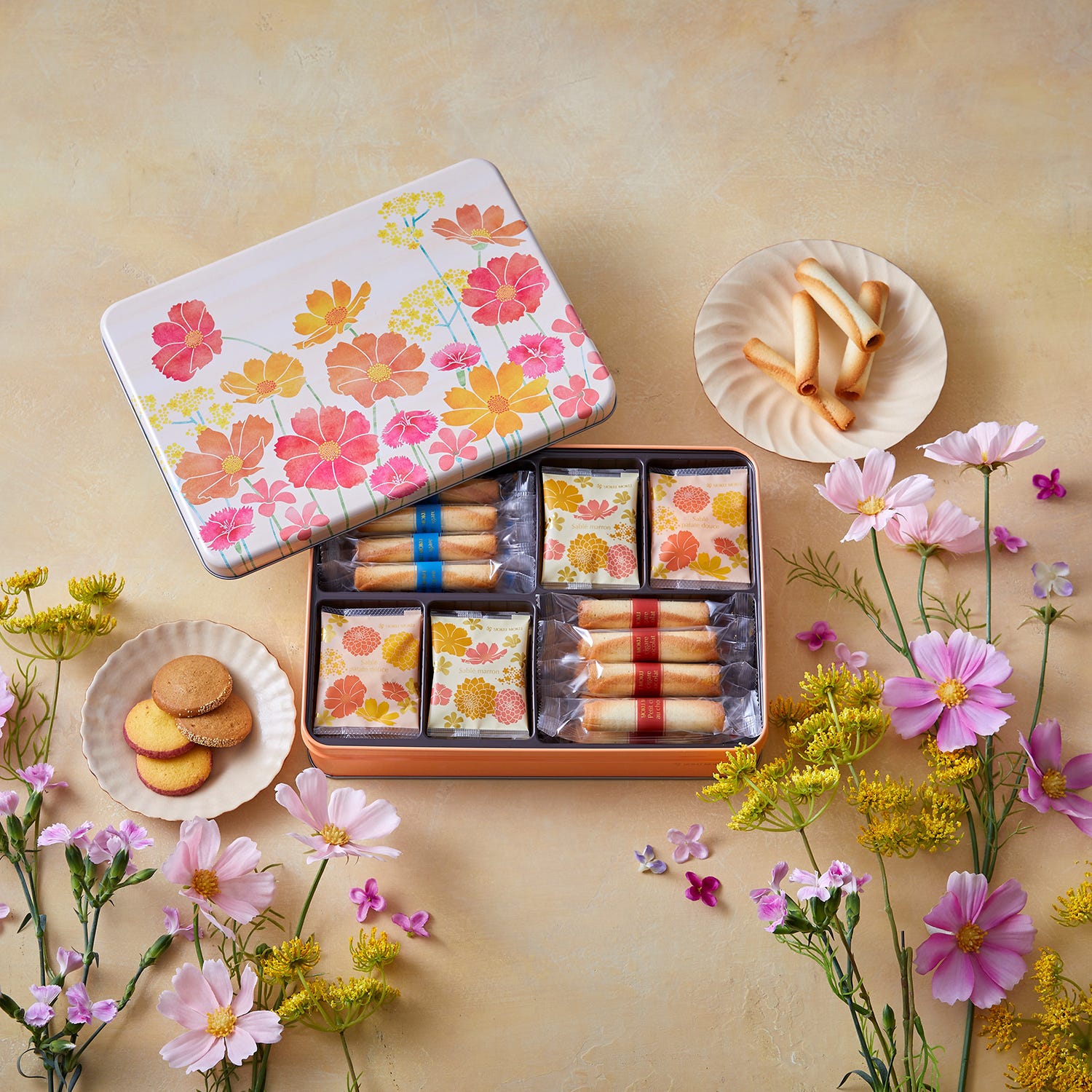 お花を贈るような気持ちでお菓子を贈る”をコンセプトに、パッケージに四季折々の花を描いた詰め合わせボックスのデザインが可愛い!栗やさつま芋といった秋の味覚を楽しめる限定サブレは、クリーミーな味わいのドリンクとの相性が抜群。