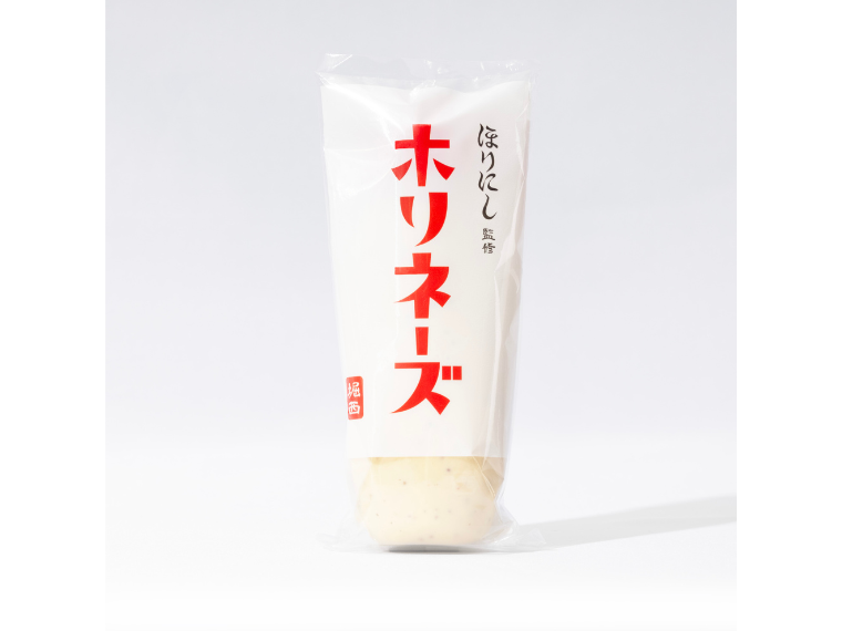 今回は老若男女問わず愛されるマヨネーズをオレンジの堀西晃弘マネージャーが監修し、食卓をより手軽においしくできればとの思いで制作した。単純にマヨネーズにほりにしを混ぜるだけでは、ほりにしのスパイス感が勝ってしまい、マヨネーズの良さが消える。ほりにしを使ったおいしいマヨネーズを目指し、ほりにし以外の調味料なども追加。食べた時のおいしさをさらに引き立てるため、大粒の粒マスタードも配合してプチプチ感をプラスした。