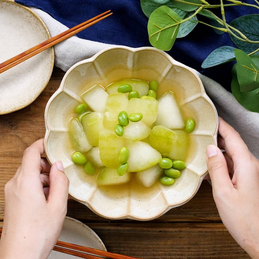 ・冬瓜 … 200g・むき枝豆 … 20g・a. 水 … 300cc・a. だしの素 … 小さじ1杯・a. 塩 … 少々・みりん … 大さじ1杯・薄口しょうゆ … 大さじ1/2杯・水溶き片栗粉 … 片栗粉:大さじ1/2杯、水:大さじ1杯【作り方】冷たい冬瓜の煮物