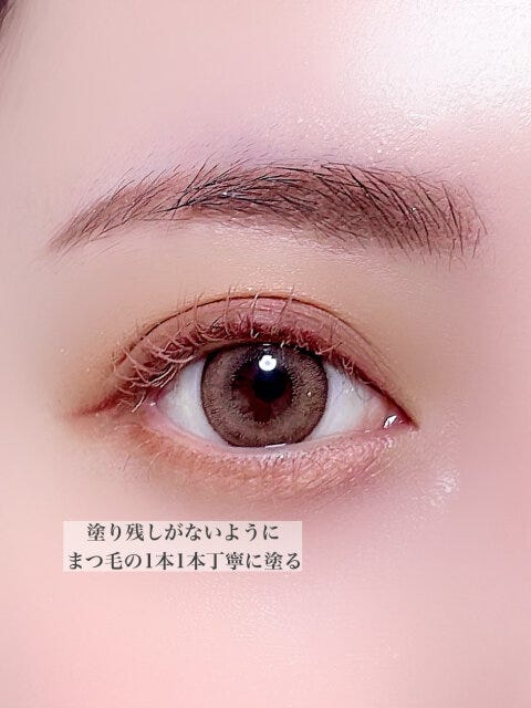 ラテベージュカラーはしっかりと色味がついているので、まつ毛の塗り残しがないように、しっかりと1本1本丁寧に塗ります。