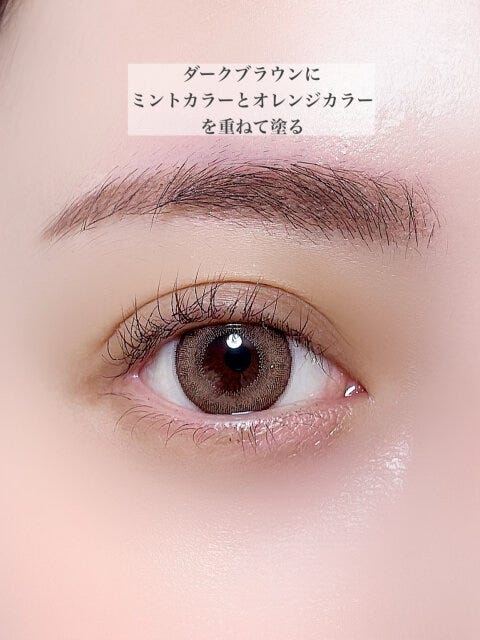普段アイブロウパウダーは、ブラウン系を使うことが多いと思うのですが、ミントカラーとオレンジカラーを重ねて塗ることで、ワンランク上の今っぽ眉に♡