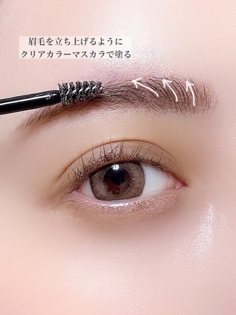 立体感と毛流れのある眉が今っぽなので、アイブロウマスカラは眉毛を立ち上げるように毛流れに沿って軽く塗るだけでOKです。