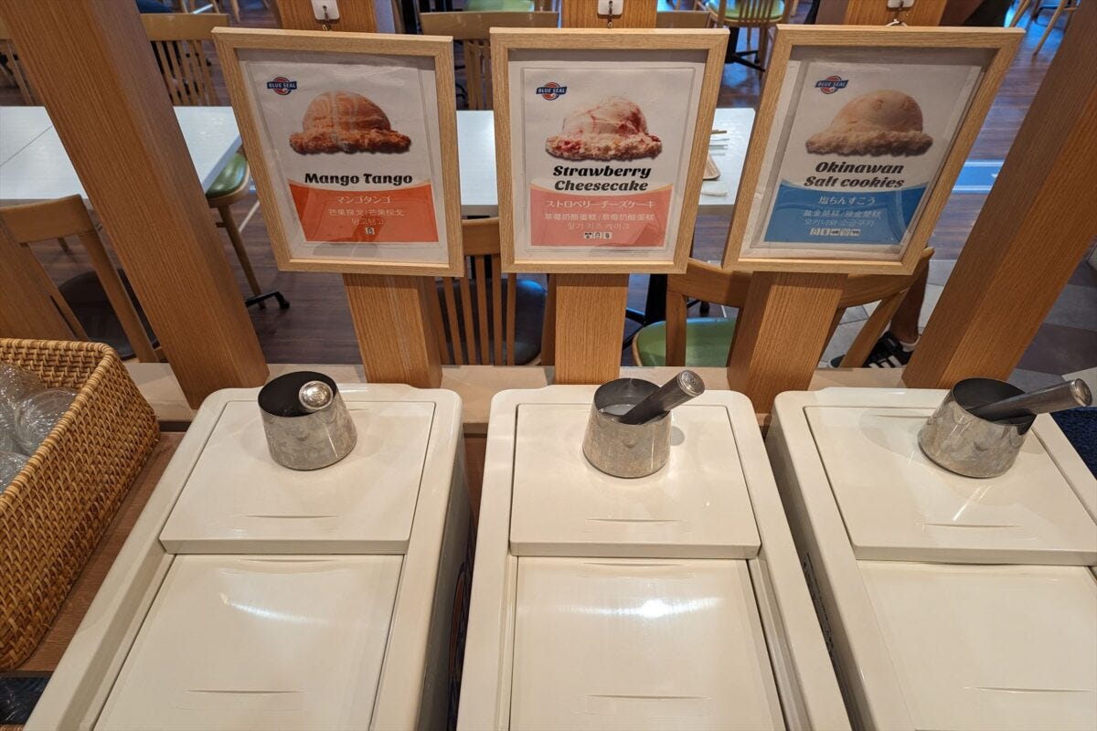 また、朝からブルーシールアイスクリームが食べ放題なのも最高。しかも3種類も選べるなんて、ステキとしか言いようがない。