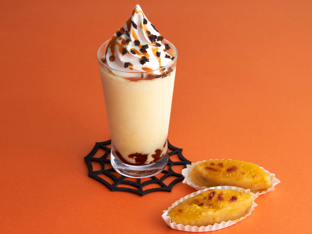 そして、さつまいもをふんだんに使用した、ジャックオーランタンをイメージしたスムージーも見逃さないで!少しずつソフトクリームと混ぜ合わせながら飲むことで、よりマイルドで香り高い味わいに。