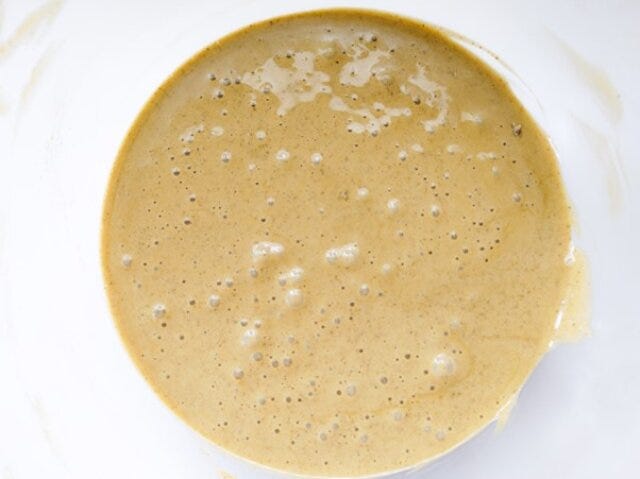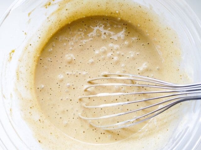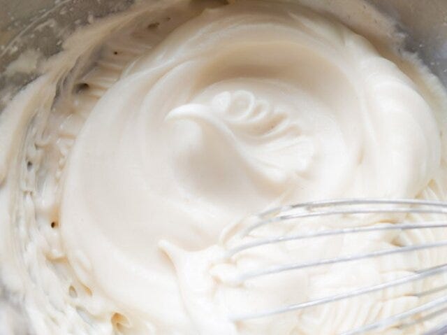 ② 米油を3回に分けて加え、乳化させるようにしっかり混ぜる。