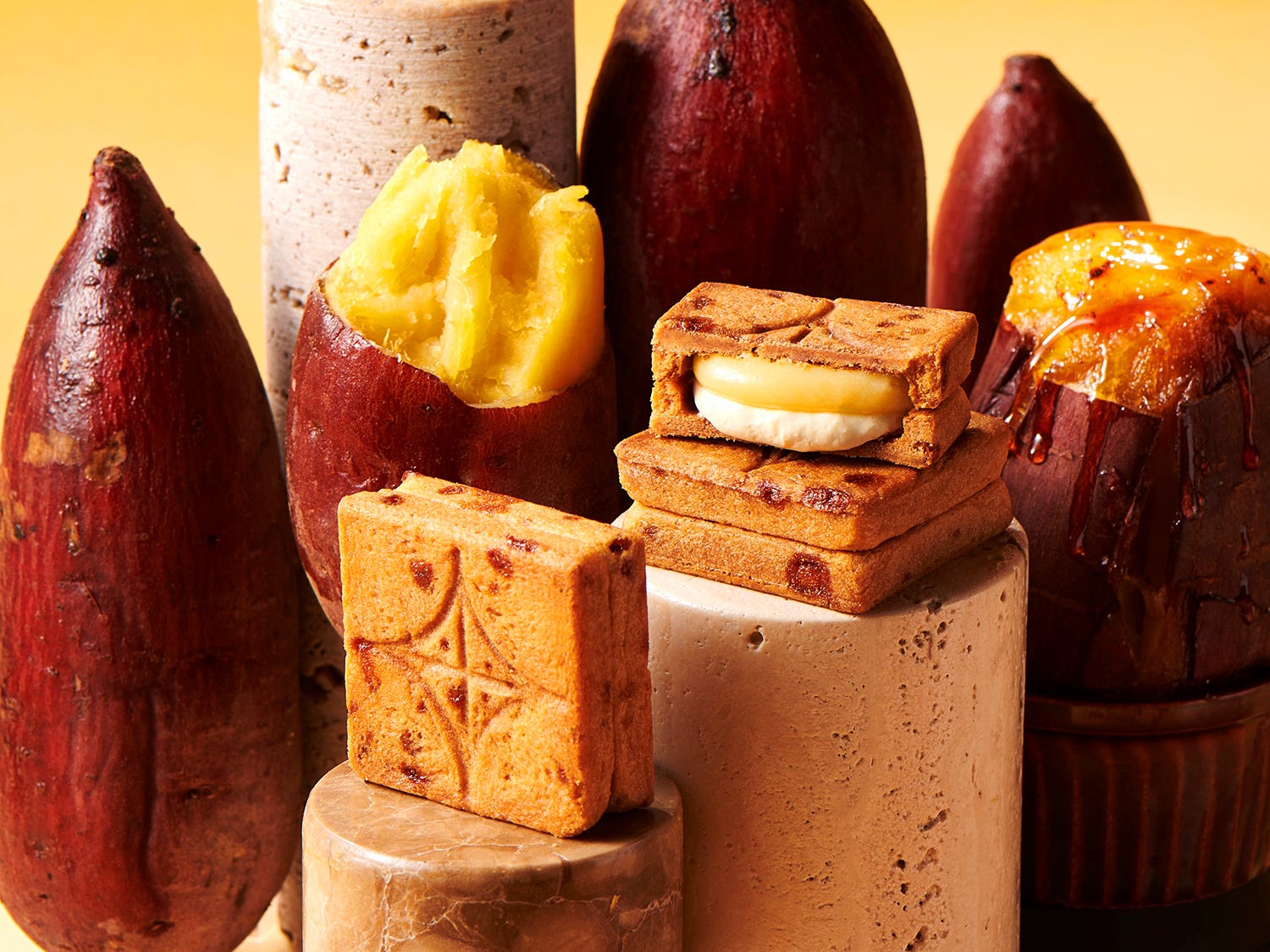 国産の安納芋を使用した、ねっとり食感の焼芋バターキャラメルと濃厚な焼芋バタークリームをたっぷりサンド。焼芋の甘みと溶け合うバターの相性が美味しさのポイント。 ※使用している芋原材料のうち、安納芋の比率は97%。