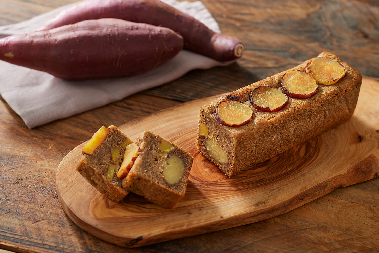 和紅茶を練りこんだ生地の真ん中に、薩摩芋で作ったスイートポテトあんを忍ばせ、甘く煮た薩摩芋の角切りもちりばめた商品。トッピングに薩摩芋のスライスをのせ、最後に生地の表面にラム酒を塗ってちょっとおしゃれなお芋の和風パウンドケーキ。 ※期間限定9月上旬〜11月末まで。