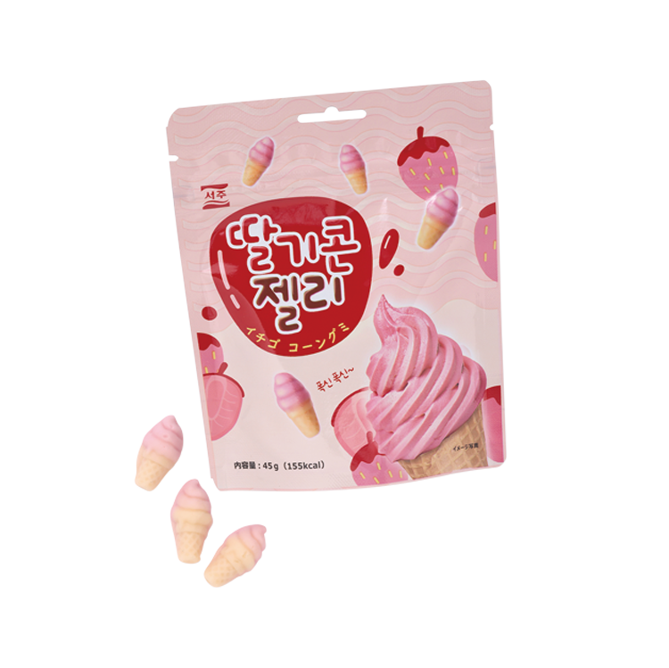 Check!1イチゴコーングミSEOJUのイチゴコーングミ。パステルピンクのソフトクリームみたいな形。ちまっとしてて愛おしい!