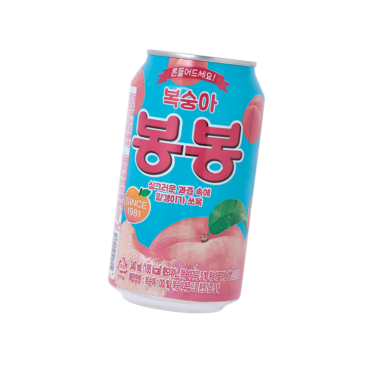 HTBの桃ボンボンと呼ばれる果実入りジュース。お部屋に飾りたくなる乙女チックなカラーリング♡