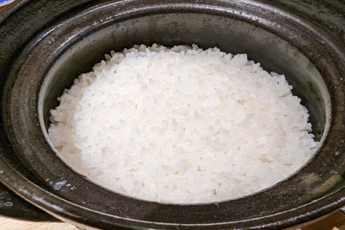 粒立ちばっちりに炊きあげられたご飯は甘くしゃっきりとしており、とんかつとの相性もばっちり。また、おこげも楽しめるのがうれしい。