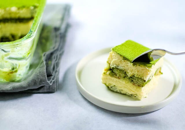 ⑨仕上げに抹茶パウダーをふって出来上がりです。