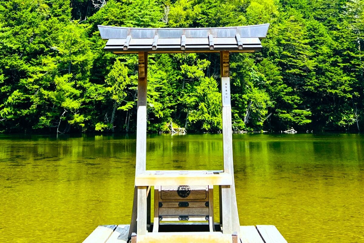 上高地の有名パワースポットといえば、穂高神社と明神池。拝観料500円(大人)を納め先に進むと、桟橋と拝殿が。神秘的で厳かな雰囲気が漂っています。上高地は『神降地』と称されるほど神聖な場所。しっかりエネルギーチャージをして心身を整えましょう!